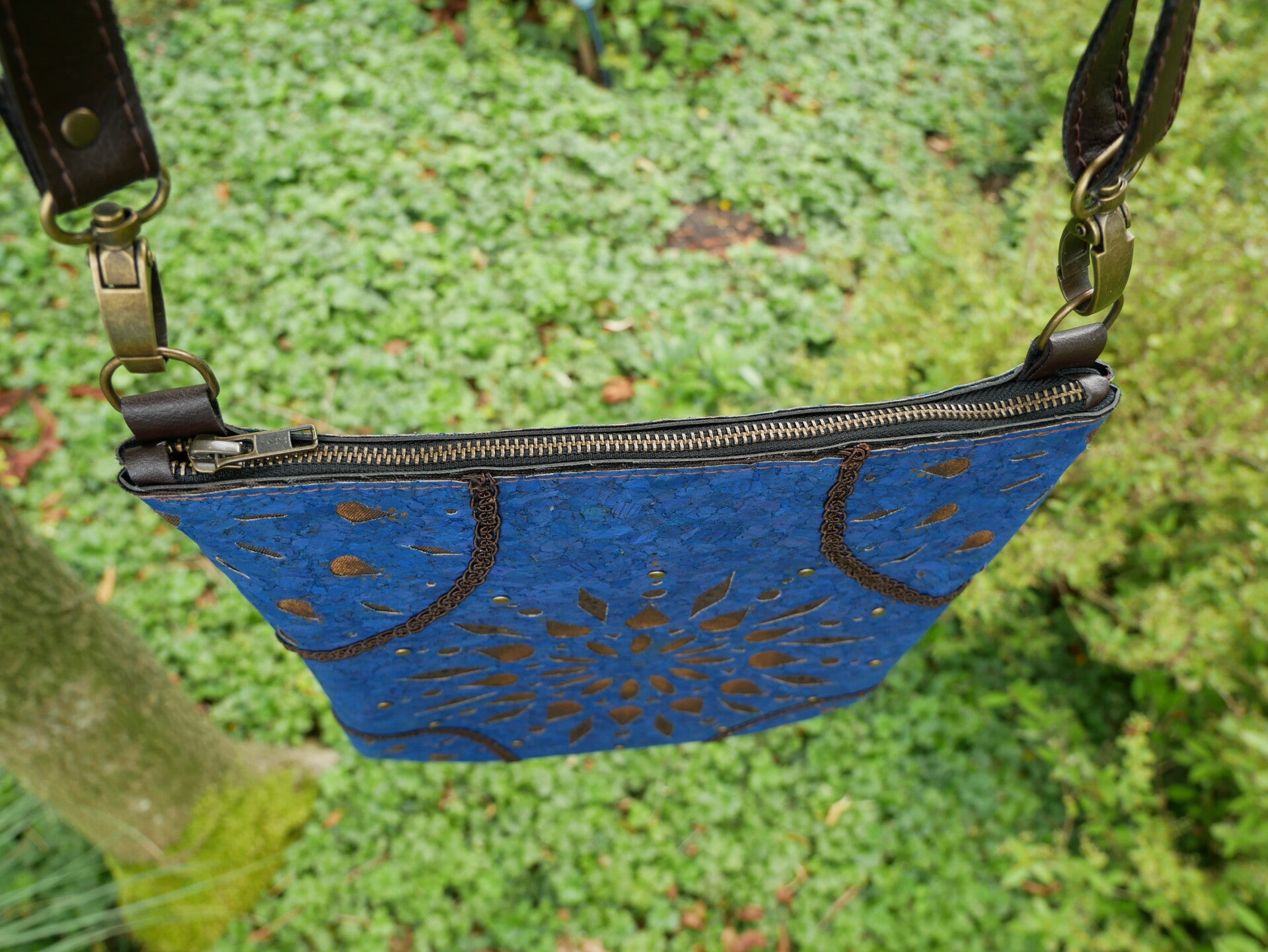 Hier weer een super gave door mij handgemaakte kurk tas! Deze tas valt vooral lekker op door de kleur. De mandala is uitgesneden met daar in bronskleurige beschildering. Deze tas heeft een binnenvak met rits zodat de kleinere accessoires veilig opgeborgen kunnen worden. De tas heeft een verstelbare schouderband.