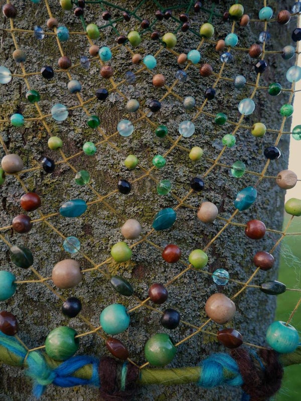 Met de handgemaakte dromenvanger. Geen een dromenvanger zal het zelfde zijn. Deze dromenvanger bevat kralen van hout plastic en glas. De hangsels zijn gevuld met wol, houten kralen en gedroogd gras. Het koordje boven kan korter gemaakt worden door er zelf een knoopje in te leggen op de gewenste hoogte.