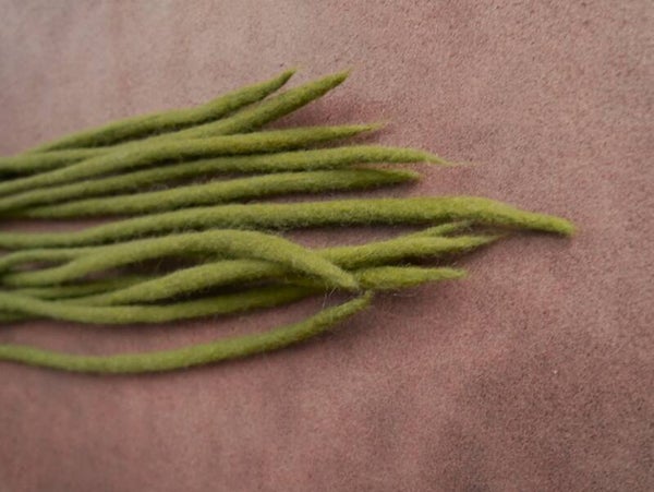 het is een natuurlijk product dat gemaakt is van merinowol. Ze worden door mij tot dreads gemaakt. De lengtes en diktes kunnen soms wat van elkaar verschillen door dat het wol de ene keer wat meer krimpt en vilt dan de ander tijdens het maken ervan. Bij het samen stellen van de dreads zoek ik de meest bij elkaar passende lengtes en diktes bij elkaar uit zodat er geen verschil tot bijna geen verschil is.