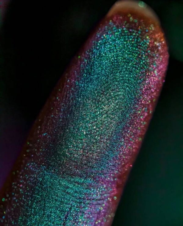 Deze vegan multichrome oogschaduw is toch wel eventjes anders dan de gemiddelde oogschaduw. Deze verkleurd naar een andere kleur, net hoe het licht erop valt. Deze oogschaduw is een losse poeder en dient met een klein beetje water aan gebracht te worden zodat het tot een mooie chrome gloed uit smeerd. (zie het youtube filmpje hier onder)