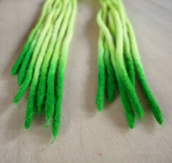het is een natuurlijk product dat gemaakt is van merinowol. Ze worden door mij tot dreads gemaakt. De lengtes en diktes kunnen soms wat van elkaar verschillen door dat het wol de ene keer wat meer krimpt en vilt dan de ander tijdens het maken ervan. Bij het samen stellen van de dreads zoek ik de meest bij elkaar passende lengtes en diktes bij elkaar uit zodat er geen verschil tot bijna geen verschil is.