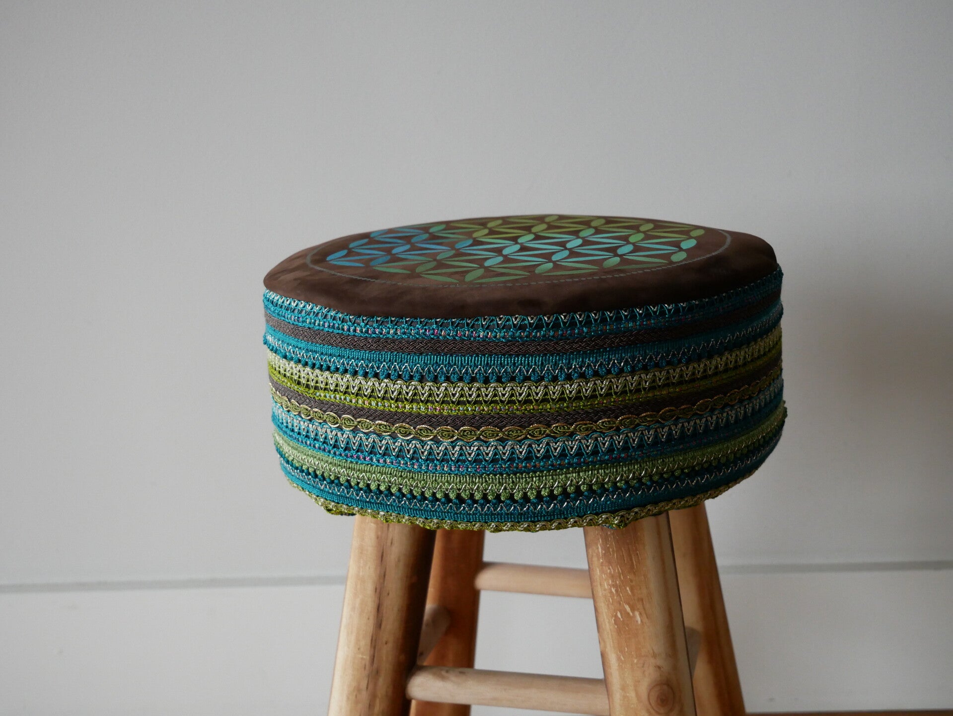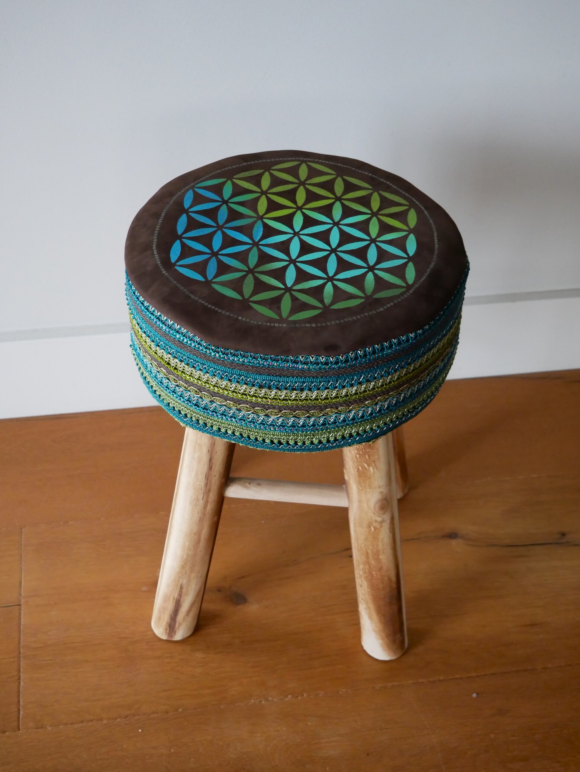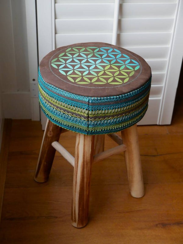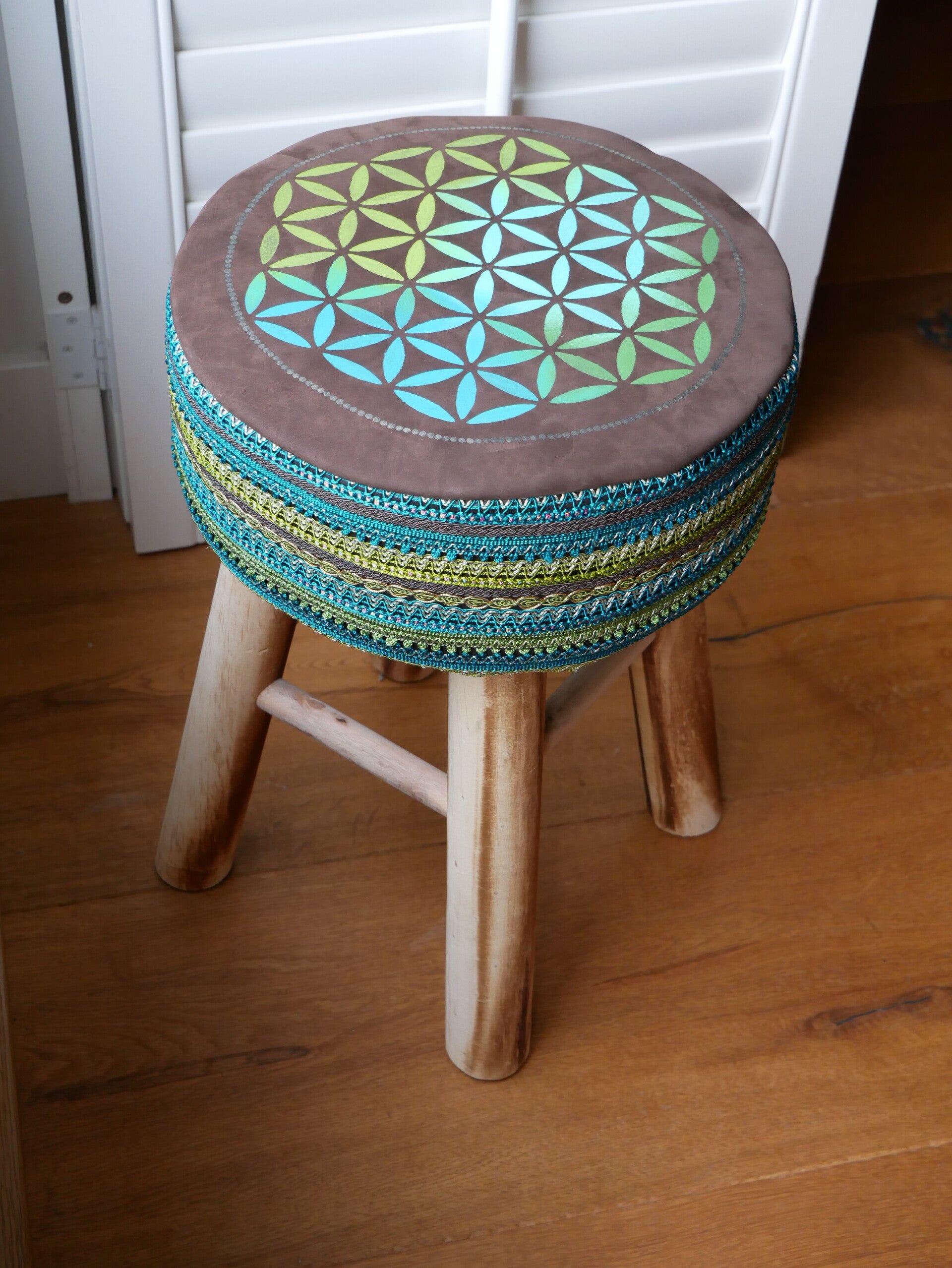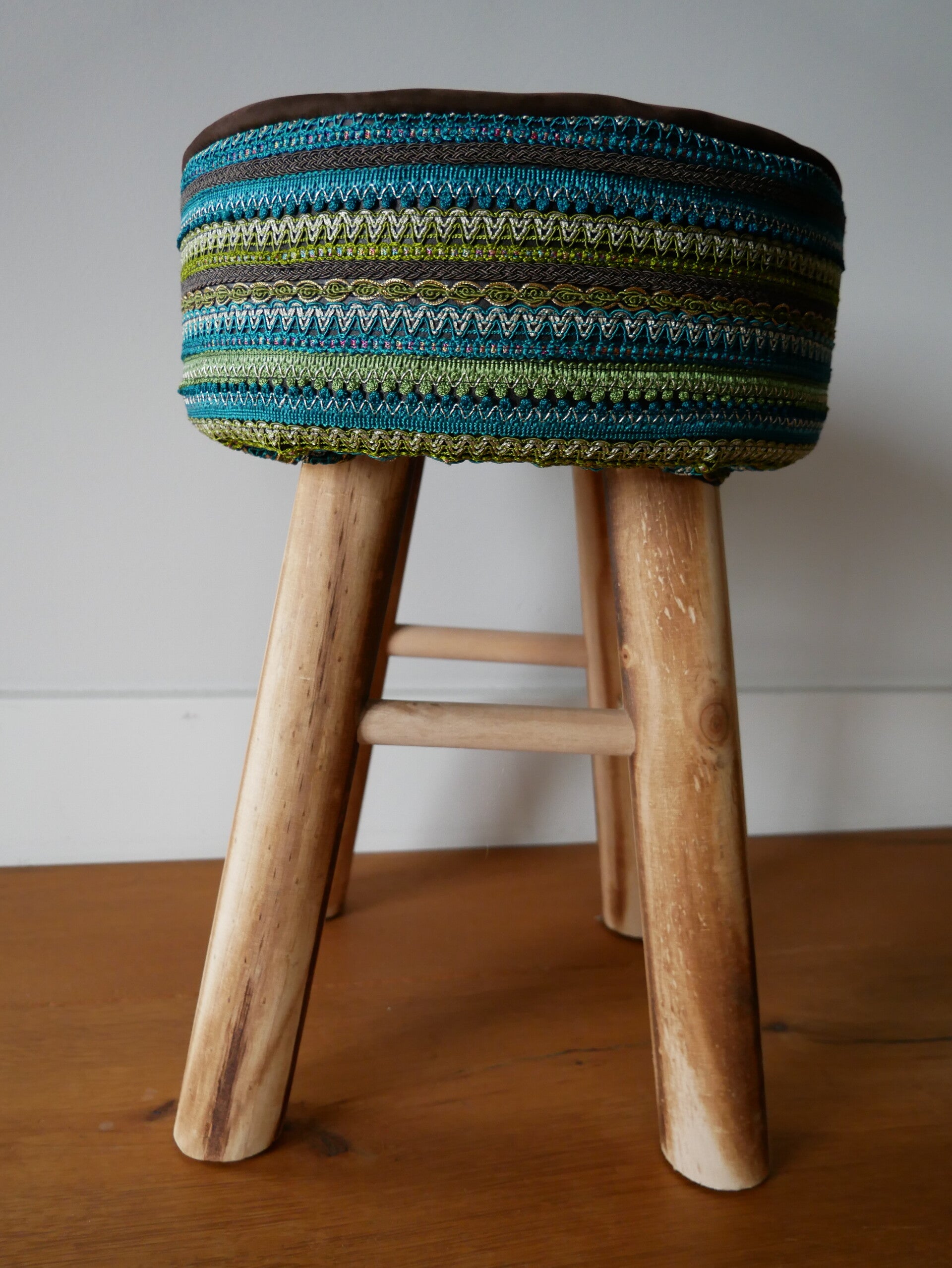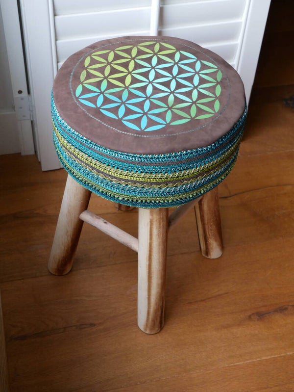 Een mooie sierkruk om bijvoorbeeld dat ene hoekje net eventjes dat extraatje te geven. Gemaakt van leer, sierbanden en hout.
