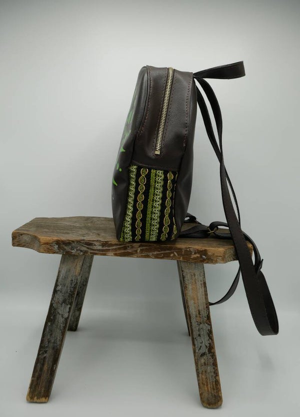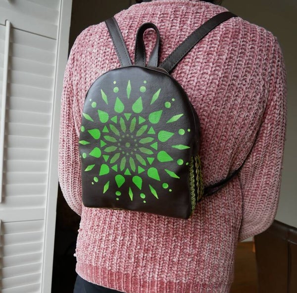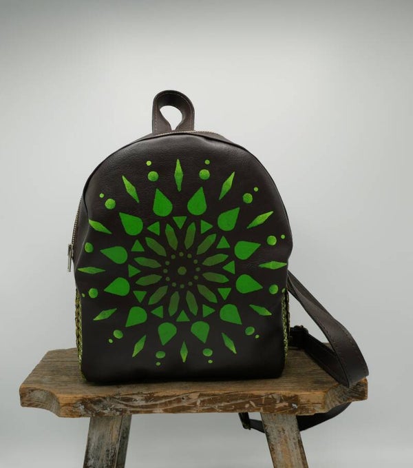 Een nieuw soort tas in mijn collectie! Kleine super gave rugzak met handgeschilderde mandala. Deze zijn gemaakt van nep leer, met aan de onderkant mooie bijpassende sierbanden. Door middel van een metale rits is deze rugzak sluitbaar. De schouderbanden zijn verstelbaar. Let op! aan de binnenkant zit geen extra binnenzak.